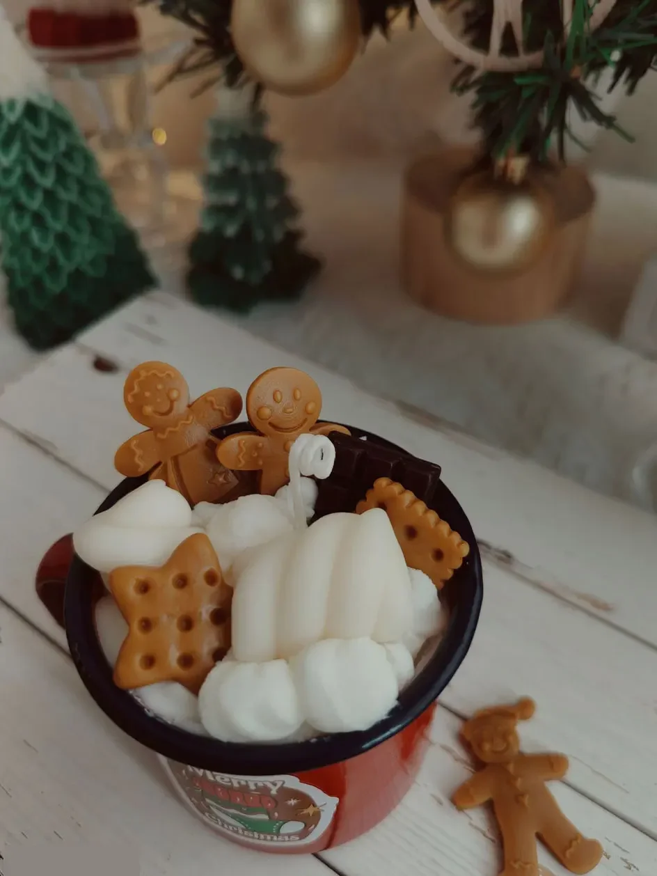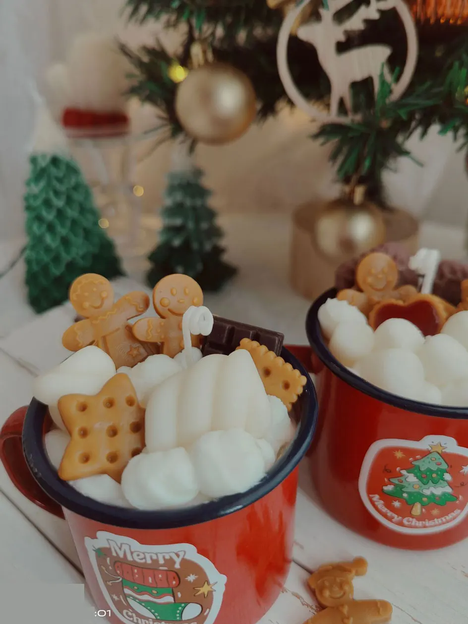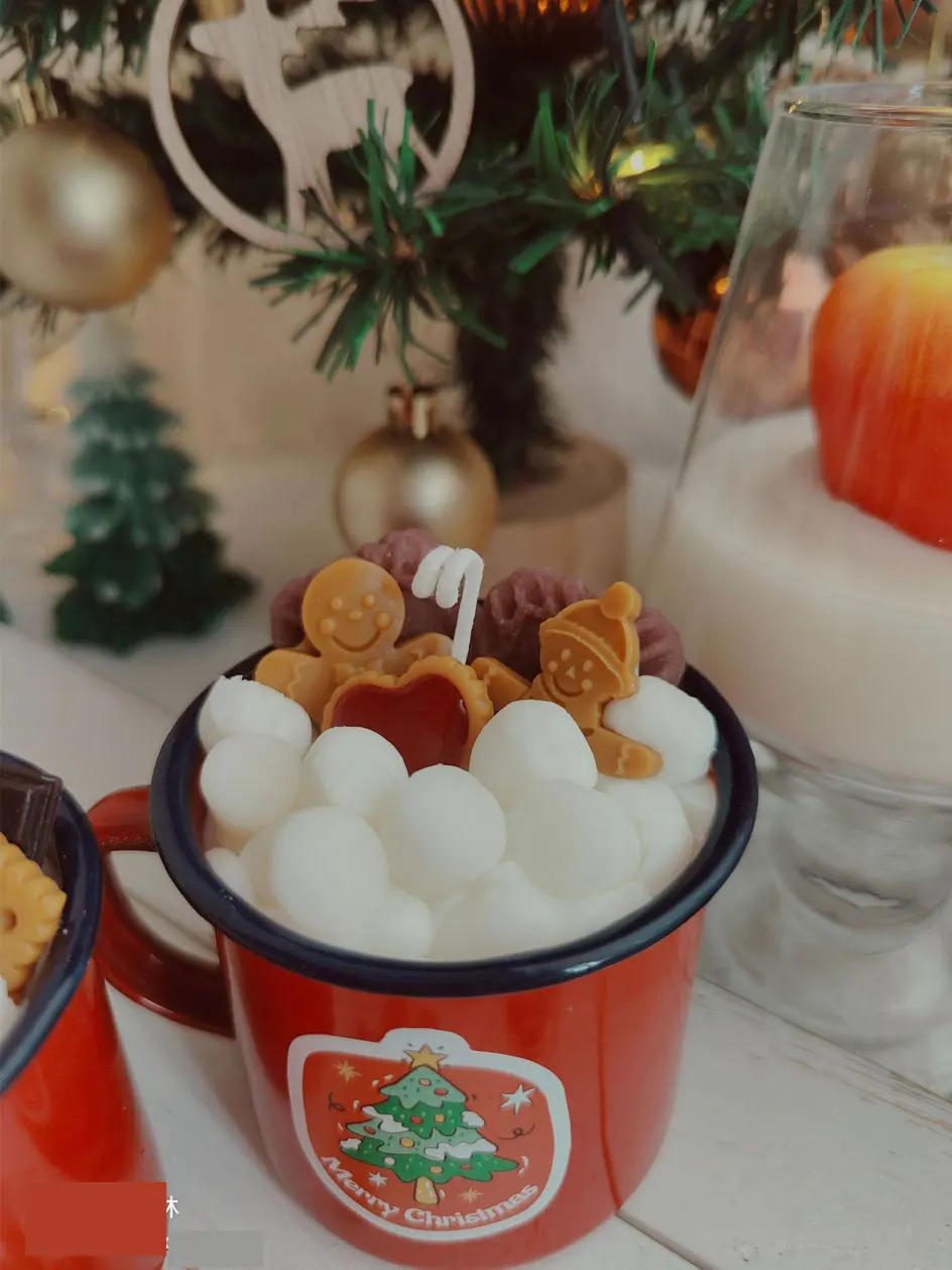 La partie crème blanche a un parfum de pêche blanche, et la décoration a un parfum de pudding au caramel .